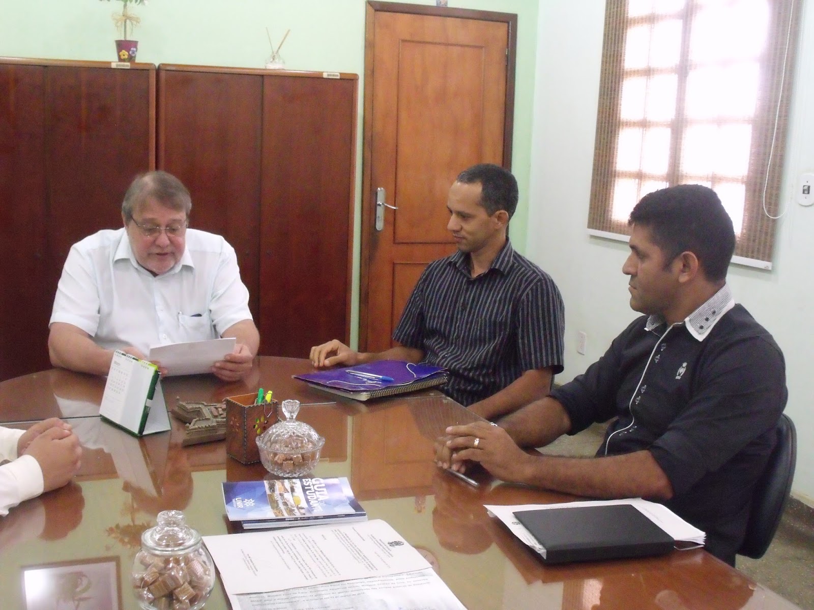 O reitor e presidente dos Conselhos Superiores da Fundação Universidade Federal de Rondônia (UNIR), professor doutor Ari Miguel Teixeira Ott, deu posse hoje, 9, para três novos membros do Conselho de Administração (CONSAD), representantes eleitos pelos servidores técnico-administrativos da Universidade. São eles: Evaldo Lopes, Jeferson Araújo Sodré e Reginilson Correa de Carvalho Guimarães. O ato de posse foi acompanhado pelo secretário dos Conselhos Superiores, Juraci Magalhães Rodrigues.