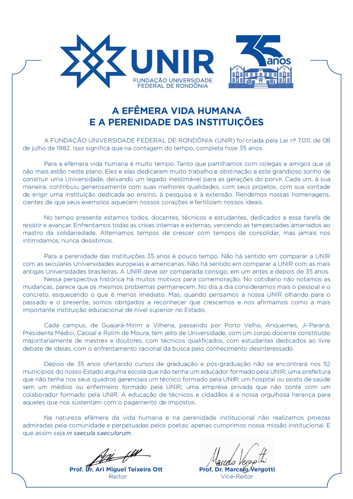 Mensagem do Reitor