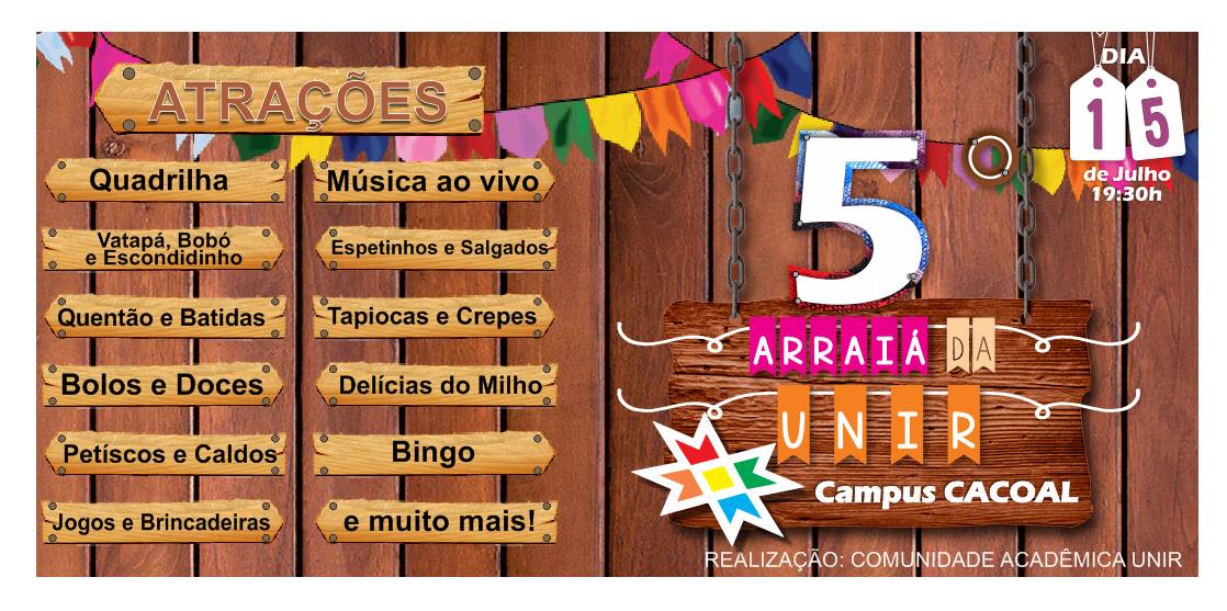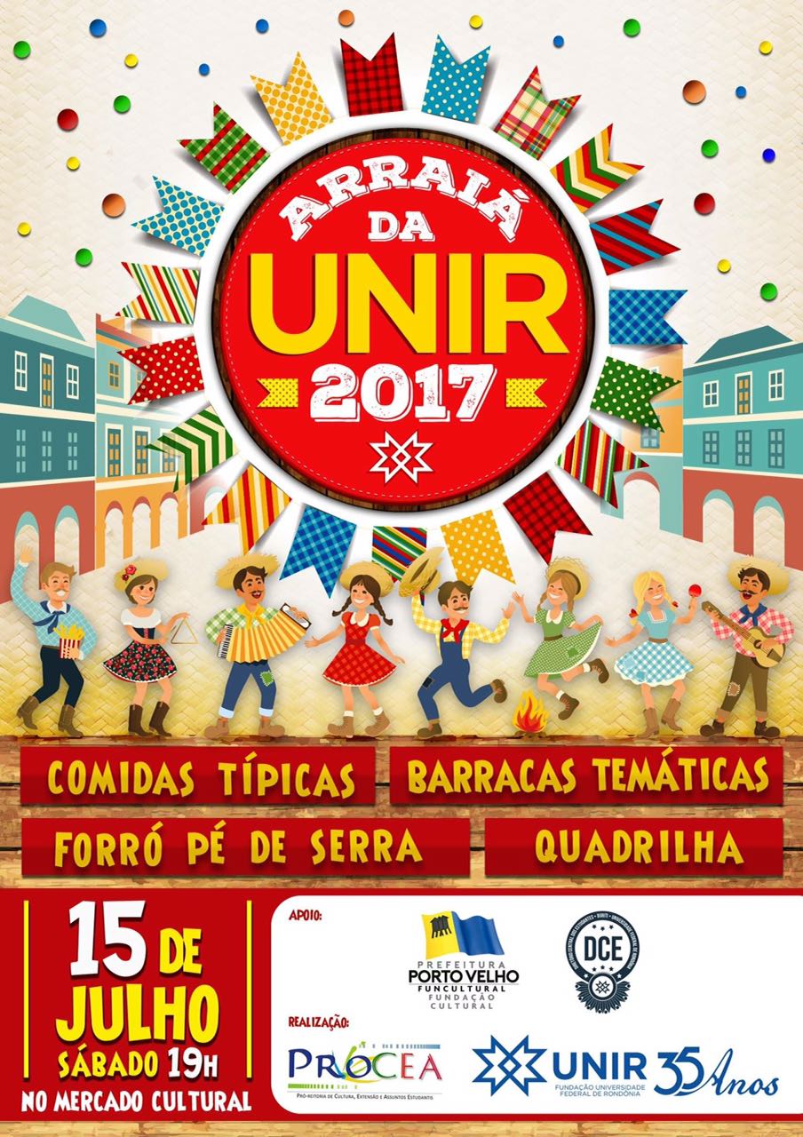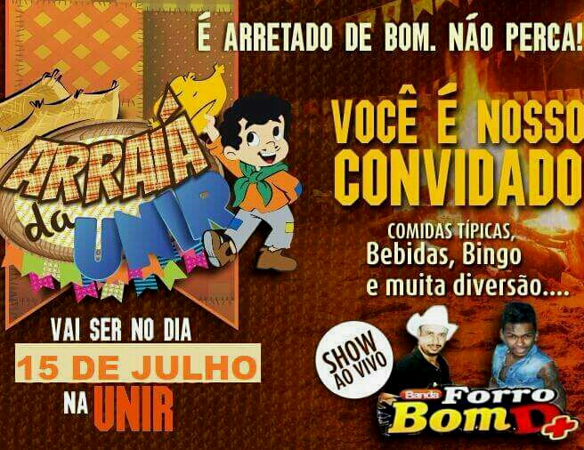 Três campi da Fundação Universidade Federal de Rondônia (UNIR) terão Arraial no próximo sábado, 15 de julho, a partir das 19 horas.