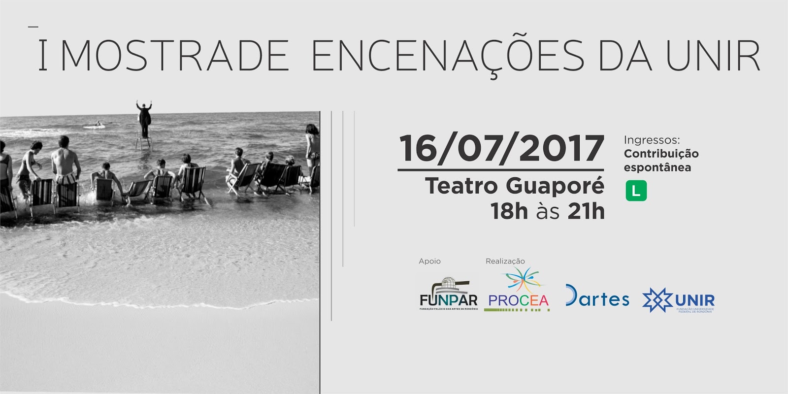 A Fundação Universidade Federal de Rondônia (UNIR) realiza no próximo domingo, 16, por meio do Departamento Acadêmico de Artes (DArtes), a I Mostra de Encenações da UNIR. O evento será realizado no Teatro Guaporé, em Porto Velho, das 18h às 21h.