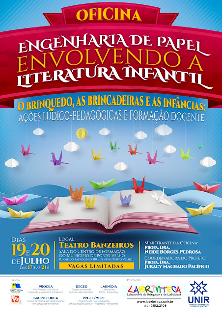 Nos dias 19 e 20 de julho, será realizada a primeira oficina ofertada pelo LABRINTECA. Trata-se de oficina denominada "Engenharia de Papel envolvendo a literatura infantil". Em agosto mais um curso será iniciado, intitulado "Práticas Pedagógicas envolvendo a literatura infantil".