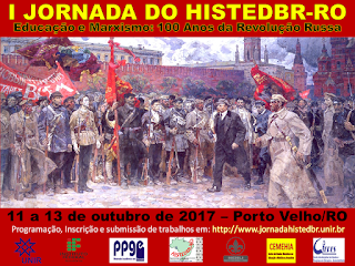 No período de 11 a 13 de outubro de 2017, em Porto Velho/RO, ocorrerá a I JORNADA DO HISTEDBR-RO, com o Tema Educação e Marxismo: 100 anos da Revolução Russa. O evento é coordenado pelo Grupo de Pesquisa História, Sociedade e Educação no Brasil - HISTEDBR-RO e conta com a parceria e apoio de outros grupos de Pesquisa vinculados à Fundação Universidade Federal de Rondônia (UNIR) e ao Instituto Federal de Educação, Ciência e Tecnologia de Rondônia (IFRO): Centro de Estudos Marxistas em Educação e História na Amazônia (CEMEHIA/UNIR), Núcleo de Estudos Históricos e Literários (NEHLI/IFRO) e Centro Interdisciplinar de Estudos e Pesquisas em Educação e Sustentabilidade (CIEPES/UNIR).