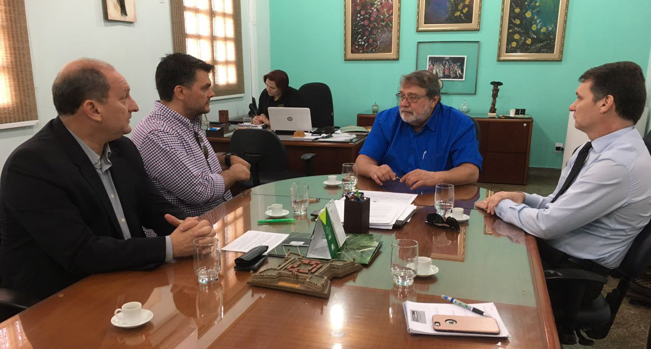 O reitor da Fundação Universidade Federal de Rondônia (UNIR), professor doutor Ari Miguel Teixeira Ott, e o presidente da Agência Municipal de Desenvolvimento de Porto Velho, Marcelo Thomé, conversaram na manhã desta terça-feira, 9, no gabinete da Reitoria, sobre possíveis parcerias entre as instituições para fomentar investimentos e empreendimentos na região. Participaram também do encontro Armando Moreira Filho e Luiz Fernando Coutinho da Rocha, diretor e assessor jurídico da Agência Municipal de Desenvolvimento, respectivamente.