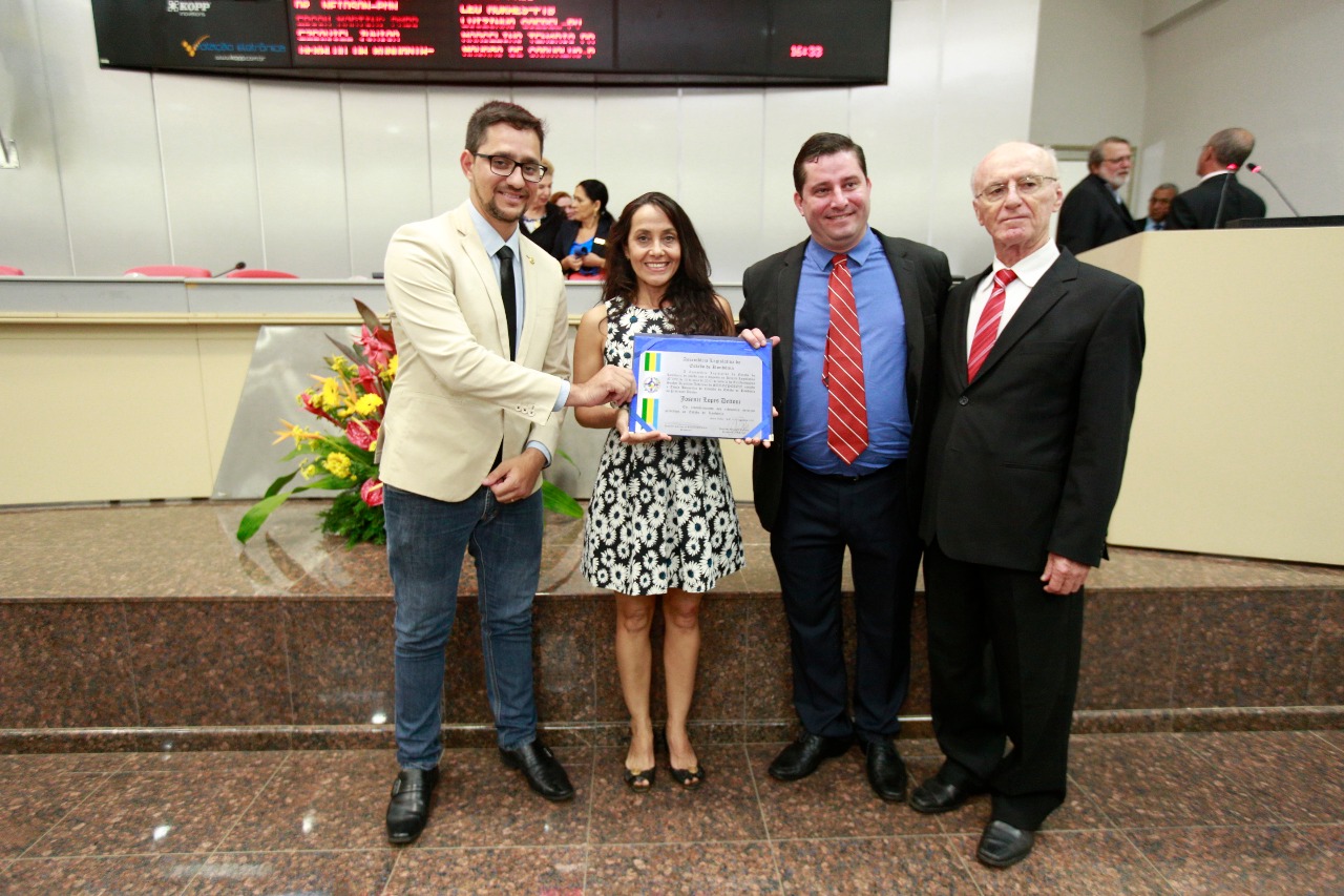 Por proposição do deputado Anderson do Singeperon, a Assembleia Legislativa concedeu ao professor Josenir Detoni, no dia 10 deste mês, o título de Cidadão do Estado de Rondônia. A sessão solene teve à mesa de honra o reitor da Fundação Universidade Federal de Rondônia (UNIR), Ari Ott, e o ex-reitor José Detoni, pai do homenageado. Também compuseram a mesa a advogada Aline Silva Correa, representando a OAB-RO e a vice-presidente do Tribunal Regional do Trabalho da 14ª Região, desembargadora Socorro Guimarães, uma vez que na mesma sessão foi feita homenagem ao programa Justiça e Cidadania, da corte trabalhista.