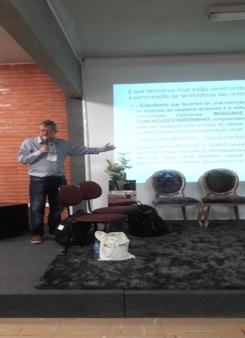 No evento, o professor participou da mesa-redonda “As redes tecendo conexões e aprendizagens nas políticas e conflitos do campo socioambiental”, juntamente com pesquisadores das demais regiões do País. Também participou de reuniões das Redes de Educação Ambiental representando a Rede de Educação Ambiental do Estado de Rondônia (REARO), além de apresentar o trabalho “As conferências infanto-juvenil para o meio-ambiente e a participação do coletivo jovem socioambiental de Rondônia”, dos autores Clarides Henrich de Barba e Rafael Santos de Barba.