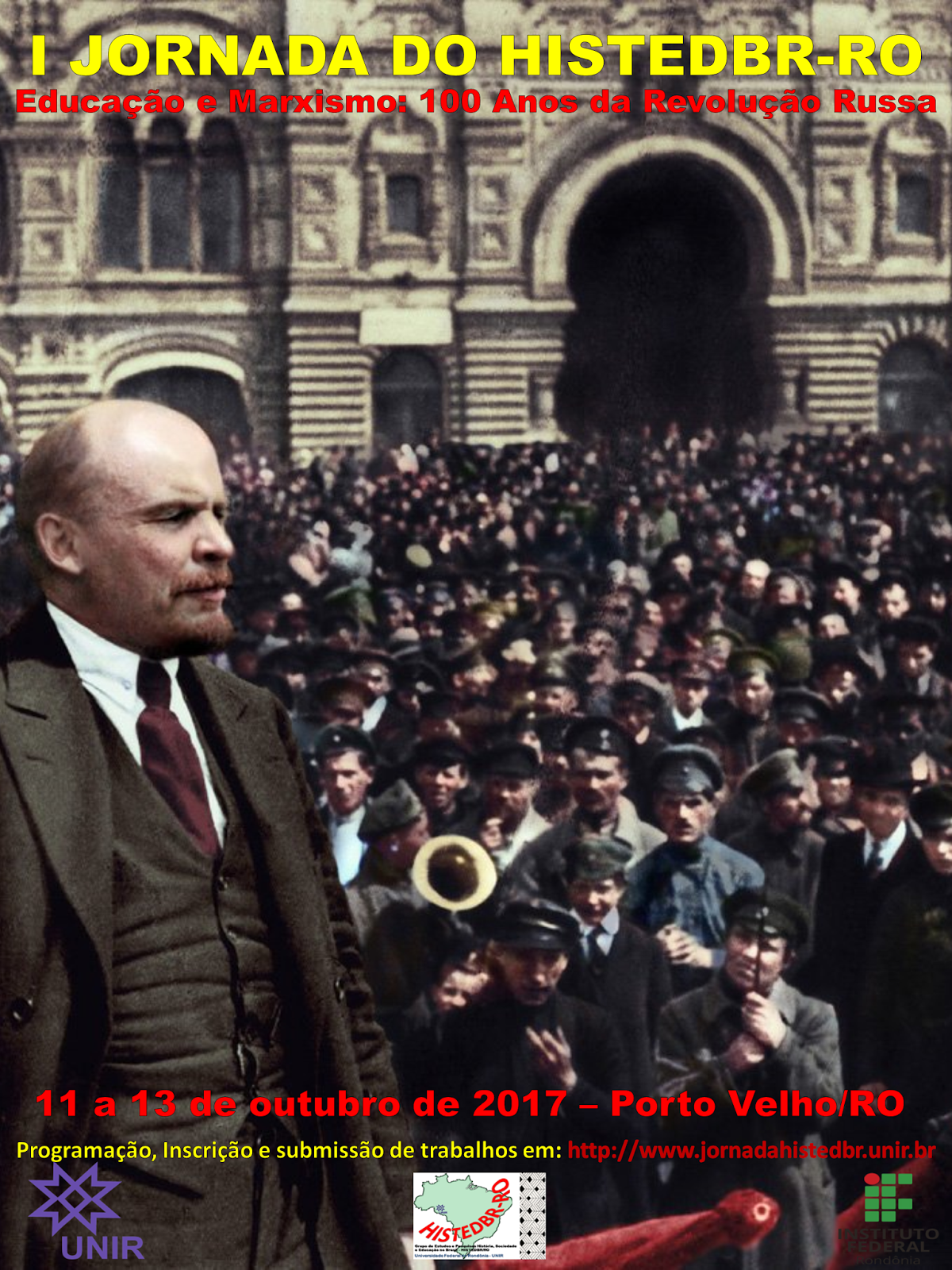 Acontece na próxima semana, de 11 a 13 de outubro, no Auditório do IFRO – Campus Calama, em Porto Velho, a I Jornada do HISTEDBR-RO, uma realização da Fundação Universidade Federal de Rondônia (UNIR), através Grupo de Pesquisa História, Sociedade e Educação no Brasil (HISTEDBR-RO), em parceria com o Instituto Federal de Rondônia (IFRO). Com a temática “Educação e Marxismo – 100 anos da Revolução Russa”, a proposta do evento é discutir a influência da Revolução Russa em processos posteriores, incluindo as propostas educacionais.