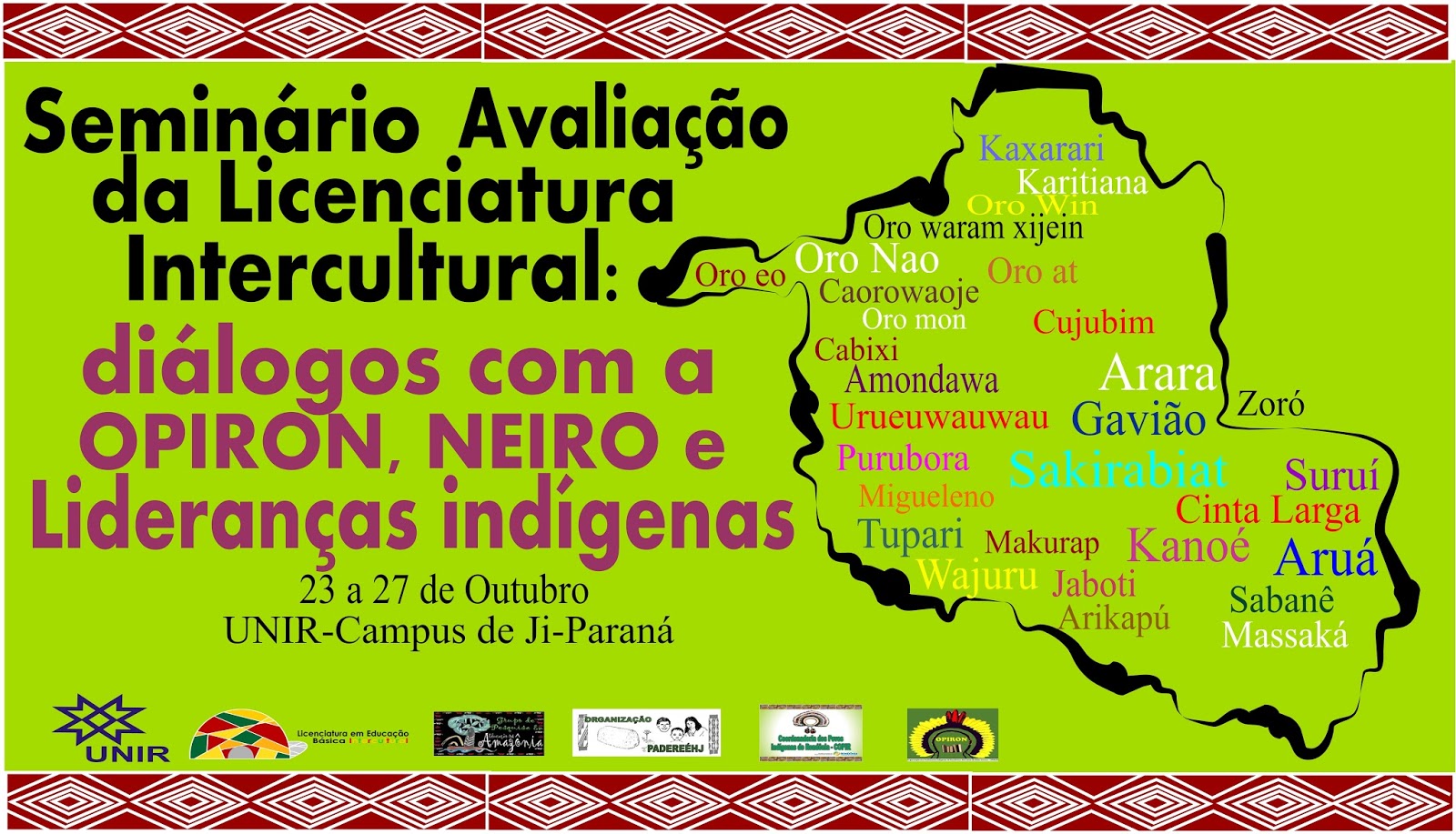 O Campus de Ji-Paraná da Fundação Universidade Federal de Rondônia (UNIR) realiza a partir de hoje (23), até dia 27 de outubro, por meio do Departamento de Educação Intercultural (Deinter), o Seminário de Avaliação da Licenciatura Intercultural: Diálogos com OPIRON, NEIRO e sociedades indígenas, que acontece das 8h às 17h, no Auditório do IFRO, em Ji-Paraná.