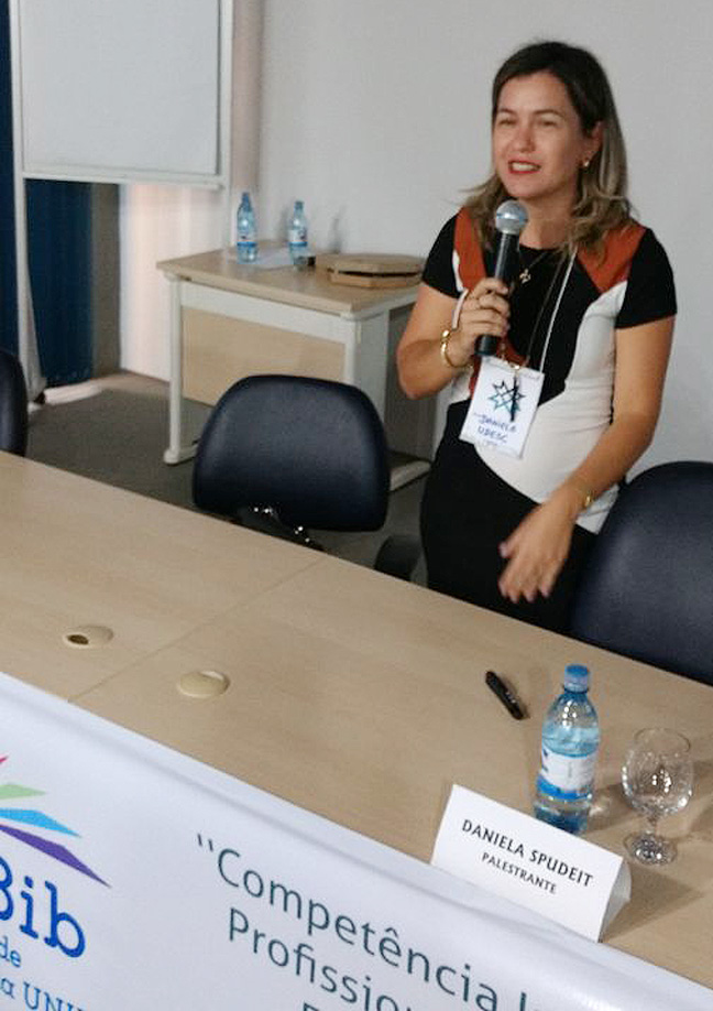 Logo após a abertura do evento, a bibliotecária da Universidade do Estado de Santa Catarina (UDESC), Daniela Spudeit, ministrou a palestra “Competências empreendedoras nas bibliotecas públicas universitárias: foco na gestão de pessoas”.