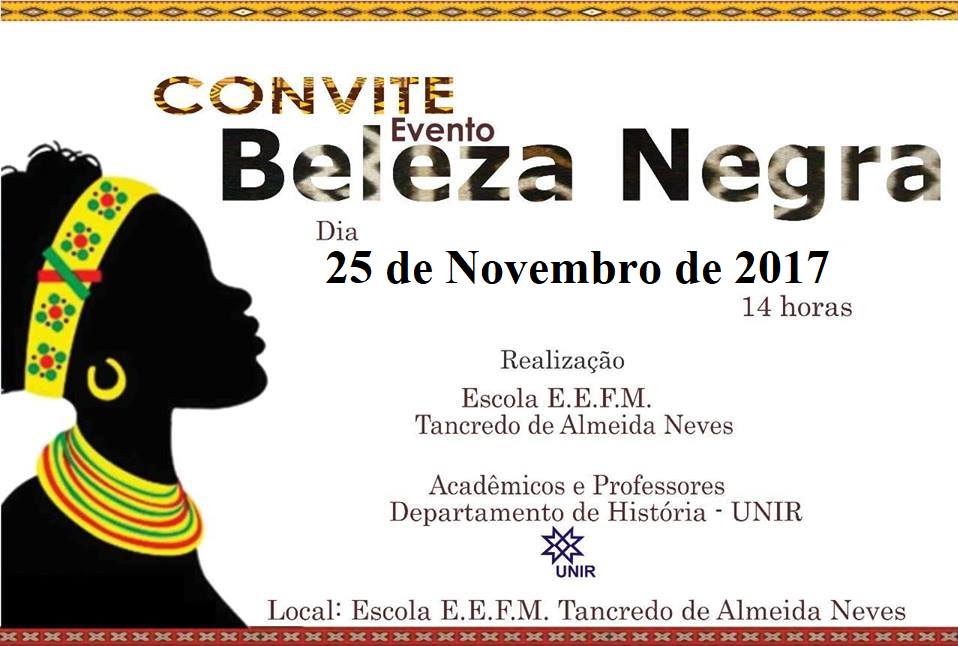 O evento denominado Beleza Negra faz parte do conjunto de atividades realizadas pelo Departamento de História do Campus Rolim de Moura da Fundação Universidade Federal de Rondônia (UNIR) e seus realizadores objetivam ressaltar o protagonismo negro junto aos estudantes da educação básica.