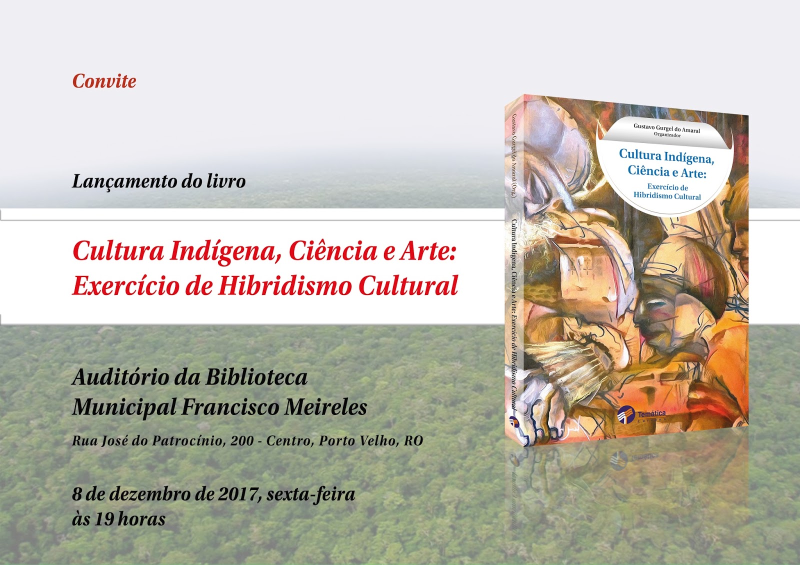 O lançamento da obra “Cultura indígena, Ciência e Arte: Exercício de Hibridismo Cultural” acontecerá na próxima sexta-feira, 8, às 19h, no auditório da Biblioteca Municipal Francisco Meireles, em Porto Velho. O livro foi organizado pelo professor doutor Gustavo Gurgel do Amaral, do Departamento de Arqueologia da Fundação Universidade Federal de Rondônia (UNIR), e publicado pela Temática Editora de Porto Velho.