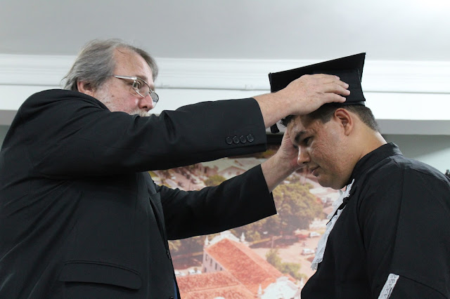 Seguiu-se a outorga de grau, ato oficial obrigatório, por meio do qual o formando é investido na posse do grau acadêmico, com a UNIR chancelando, diante da comunidade acadêmica e seus familiares, que o concluinte completou todos os requisitos exigidos pela lei e pelos regulamentos do país para ter acesso ao direito de exercer uma profissão de nível superior. O formando Madson Oliveira Cardoso, do curso de Engenharia Elétrica, recebeu a outorga de grau e diploma, em seu nome e dos demais.