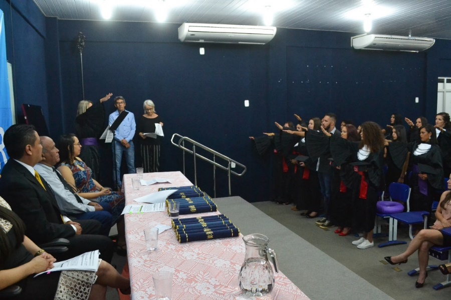 A cerimônia aconteceu à noite, no auditório do IFRO, sob a presidência do diretor do Campus, professor doutor João Gilberto de Souza Ribeiro. O evento contou também, na composição da mesa, com a participação da coordenadora do Curso de Pedagogia e representante da DIRED, professora Marijane Silveira da Silva; da coordenadora do Polo da UAB, professora Antonia Lúcia De Souza Guilhen Mázaro; e dos professores chefes de Departamento: Naiara dos Santos Nienow (Pedagogia), Lenilson Sérgio Cândido (Estatística e Matemática), Patrícia Matos Viana de Almeida (Física), Jeferson Alberto de Lima (Engenharia Ambiental), Quesler Fagundes Camargos (Educação Intercultural).