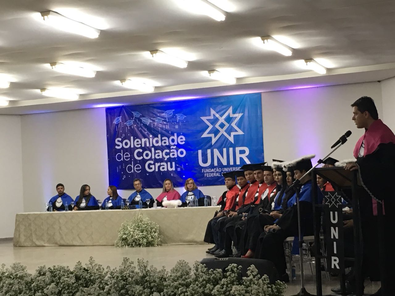 No dia 12 de março aconteceu a cerimônia de colação de grau de 45 alunos dos Cursos de Engenharia Ambiental, Educação Básica Intercultural, Estatística, Física, Matemática e Pedagogia do Campus de Ji-Paraná e dos Cursos de Letras e Pedagogia da Universidade Aberta do Brasil.