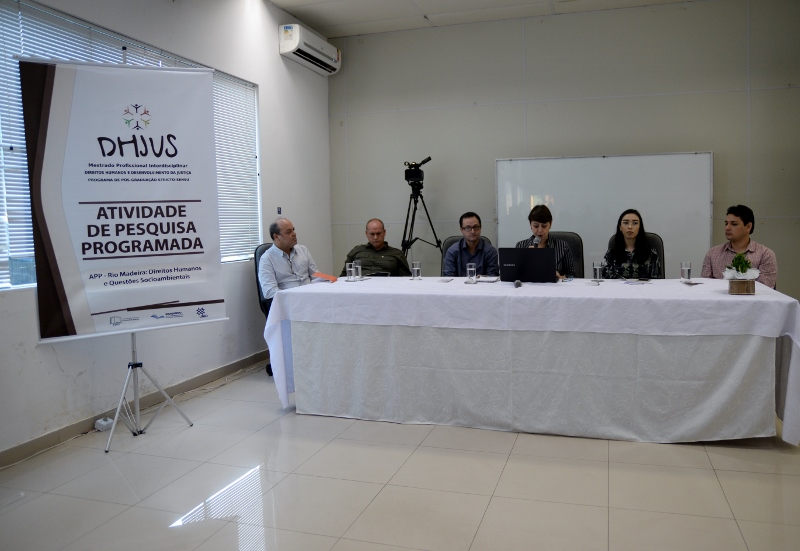 Iniciada nesta segunda (9), a Atividade de Pesquisa Programada (APP) do Mestrado Profissional Interdisciplinar em Direitos Humanos e Desenvolvimento da Justiça (DHJUS), realizado em parceria entre a Escola da Magistratura do Estado de Rondônia (Emeron) e a Fundação Universidade Federal de Rondônia (UNIR), abriu a semana de programações com três mesas redondas sobre a cheia de 2014. Até 14 de abril, a APP, destinada às turmas de 2017 e 2018 do curso, investigará questões socioambientais e as problemáticas dos Direitos Humanos das populações e comunidades impactadas pelas obras das usinas hidrelétricas (UHEs) do Rio Madeira, com visitas de campo.