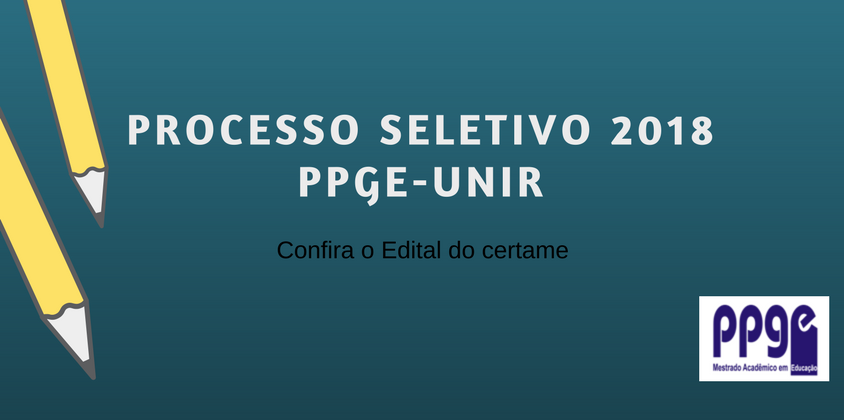 A Coordenação do Programa de Pós-Graduação Stricto Sensu em Educação – Mestrado Acadêmico em Educação da Fundação Universidade Federal de Rondônia (PPGE/UNIR), torna público o Edital do Processo Seletivo 2018, visando a seleção de candidatos para preenchimento de vagas do Mestrado Acadêmico em Educação, no Campus José Ribeiro Filho, em Porto Velho.