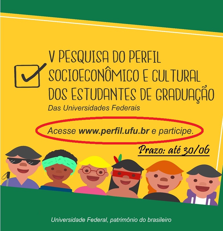 A Associação Nacional dos Dirigentes das Instituições Federais de Ensino Superior (Andifes) e o Fórum Nacional de Pró-Reitores de Assistência Estudantil (Fonaprace) realizam em 2018 a quinta edição da Pesquisa do Perfil Socioeconômico dos Estudantes das Universidades Federais (clique aqui para participar). Os dados são fundamentais por gerarem subsídios para políticas públicas e diagnóstico de como está constituído o corpo discente das universidades, com a finalidade de auxiliar, também, nas demandas de assistência estudantil. O prazo para preenchimento do formulário da pesquisa pelos estudantes de graduação encerra em 30 de junho de 2018.