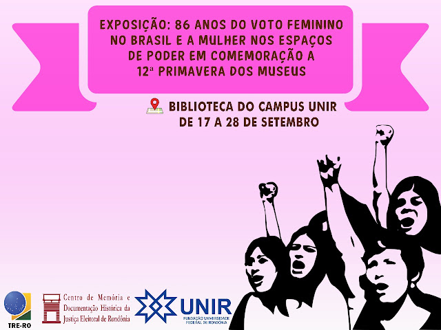 Este ano o Brasil comemora os 86 anos da conquista do voto feminino, a partir da instituição do primeiro Código Eleitoral, em 1932. Por esta razão o Tribunal Regional Eleitoral de Rondônia (TRE-RO) organizou, no mês de julho de 2018, a exposição “86 Anos do Voto Feminino e a Mulher nos Espaços de Poder”, a qual tem como protagonistas as mulheres em espaços tidos como masculinos.