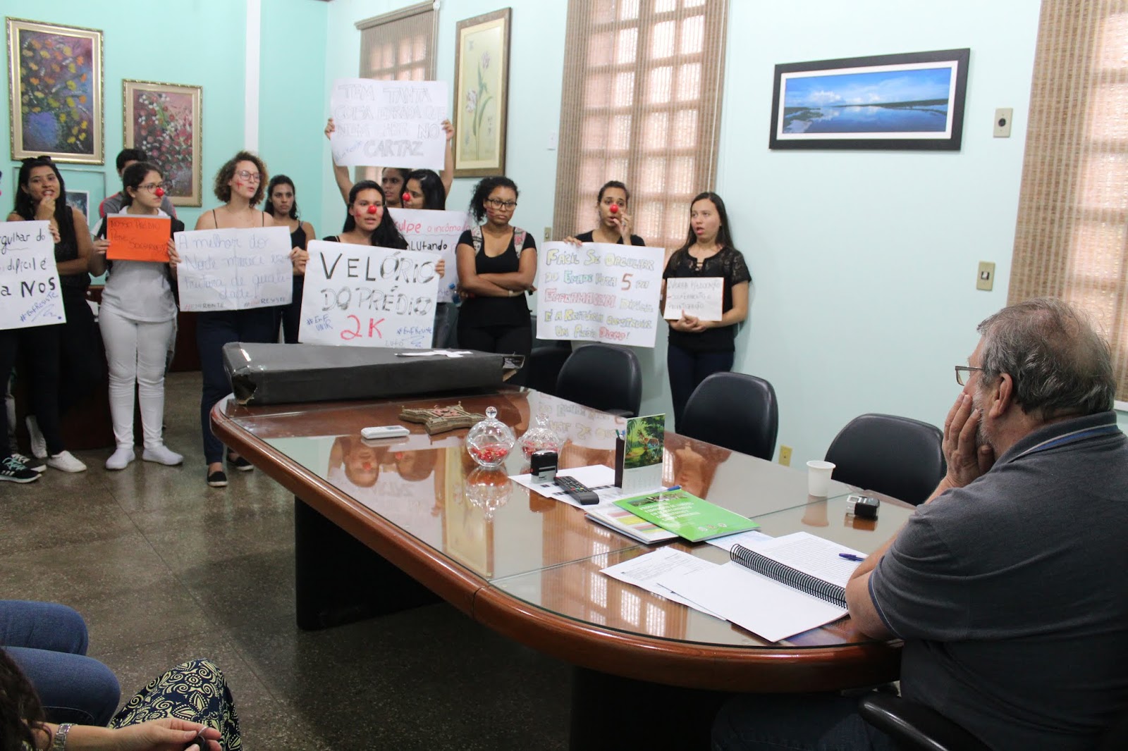 No encontro os discentes apresentaram reivindicações referentes ao prédio das turmas de enfermagem, uma vez que suas salas de aula foram alagadas quando fortes chuvas caíram em Porto Velho.