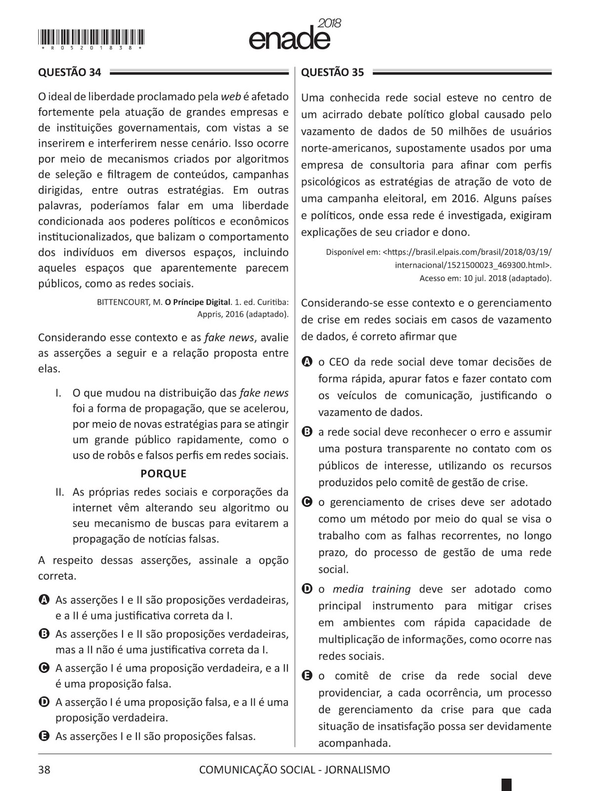 O livro O Príncipe Digital, de autoria da professora doutora Maíra Carneiro Bittencourt, docente do curso de jornalismo da Fundação Universidade Federal de Rondônia (UNIR), foi uma das referências bibliográficas utilizadas no Exame Nacional de Desempenho de Estudantes (Enade) deste ano na questão 34. A obra reúne o resultado da pesquisa empreendida na elaboração da tese de doutorado apresentada à Universidade de São Paulo (USP).