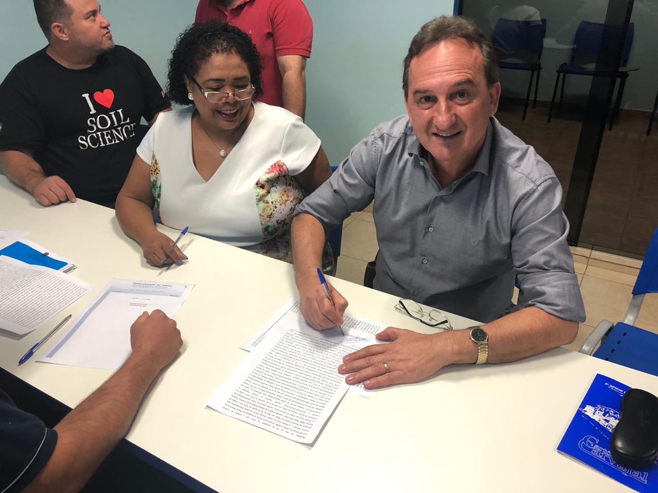 A diretora do Campus da Fundação Universidade Federal de Rondônia (UNIR) em Rolim de Moura, professora Dalza Gomes, assinou na manhã dessa sexta-feira, 21, junto com o prefeito Luiz Ademir Schock, a escritura pública de doação do terreno da chamada Fazenda Experimental. Com área de 91,78 hectares, o imóvel foi doado de fato à universidade há mais de 15 anos, porém recebeu especial atenção nas gestões dos reitores Maria Berenice Tourinho e Ari Ott para que se promovesse sua escrituração.