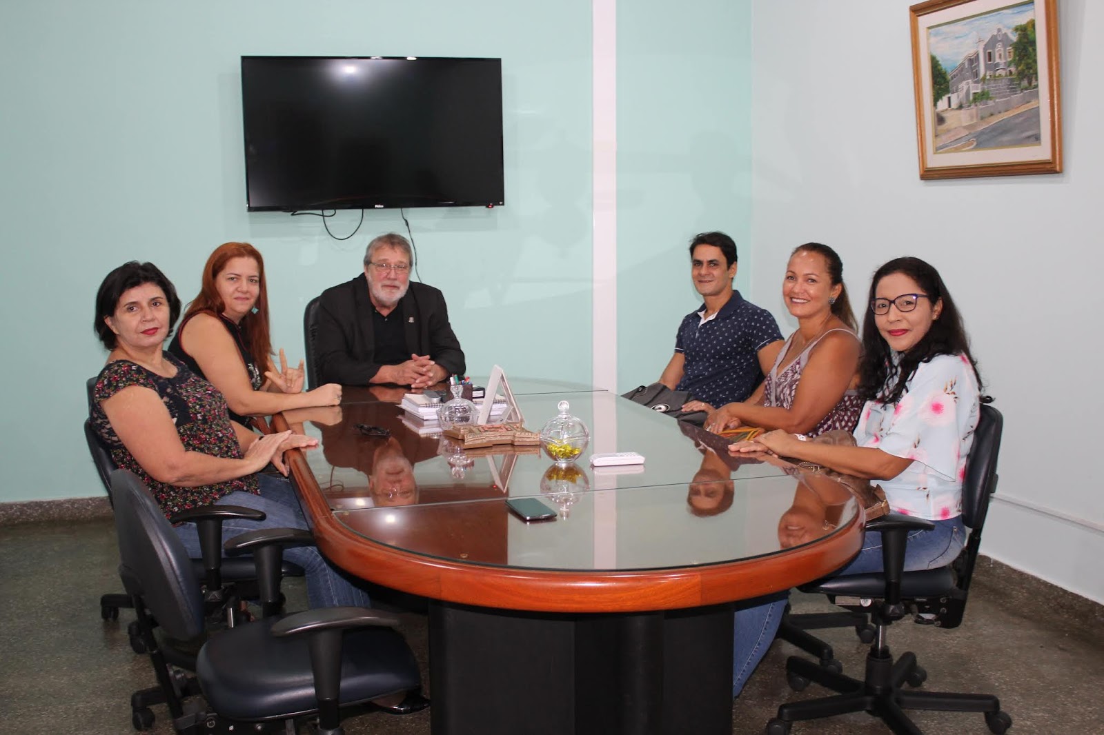 Os avaliadores Itates Mara Medeiros e Jefferson Diorio do Rozário foram recebidos no gabinete da reitoria pelo reitor Ari Miguel Teixeira Ott e pelo vice-reitor Marcelo Vergotti, na tarde da quinta-feira (14). Também participaram da recepção a vice-diretora do Núcleo de Ciências Humanas (NCH), professora Walterlina Brasil, a chefe e a vice-chefe do Departamento Acadêmico de Libras (DLibras), respectivamente, Ariana Boaventura e Geralda Iris de Oliveira.