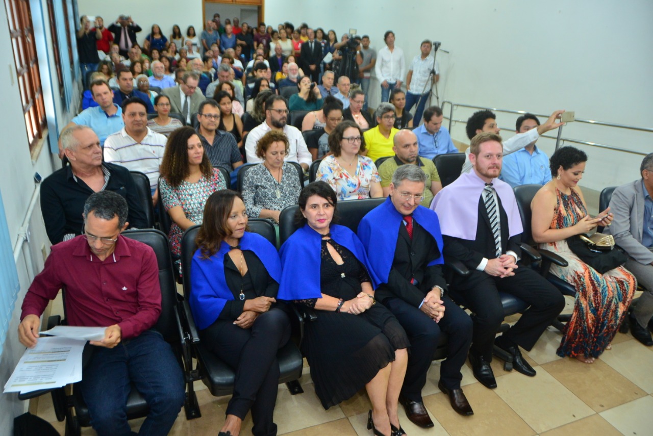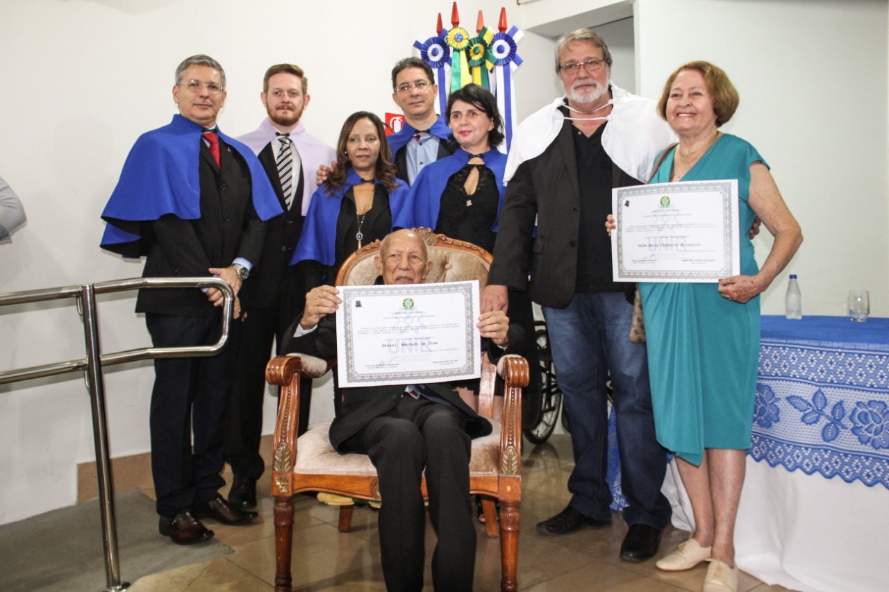 A homenageada foi conduzida ao seu lugar de honra na sessão solene do Consea pelas conselheiras e docentes Walterlina Brasil e Kátia Sebastiana Carvalho. A condução do homenageado foi feita pelos também conselheiros e docentes José Juliano Cedaro e Márcio Secco. A saudação ao homenageado foi feita pelo chefe do Departamento de História, professor Antônio Cláudio Rabelo.