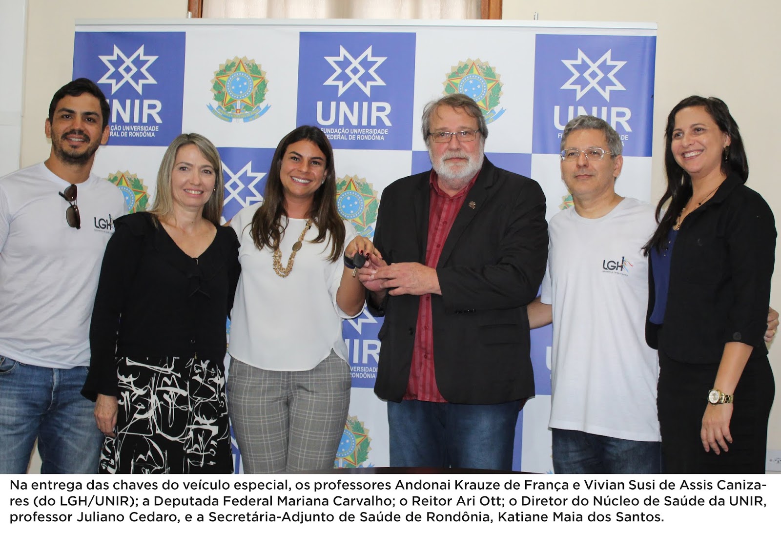 O Laboratório de Genética Humana (LGH) da Universidade Federal de Rondônia (UNIR) passa a contar agora com um veículo especial, do tipo van, no transporte de pacientes e seus familiares. A entrega do equipamento foi feita nessa segunda-feira (06) pela deputada federal Mariana Carvalho, autora da emenda parlamentar que garantiu recursos para a aquisição de equipamentos para diagnóstico e assistência a portadores de doenças raras. A van e os equipamentos foram recebidos oficialmente pelo reitor da UNIR, professor doutor Ari Ott, e pelo diretor do Núcleo de Saúde, professor doutor Juliano Cedaro.