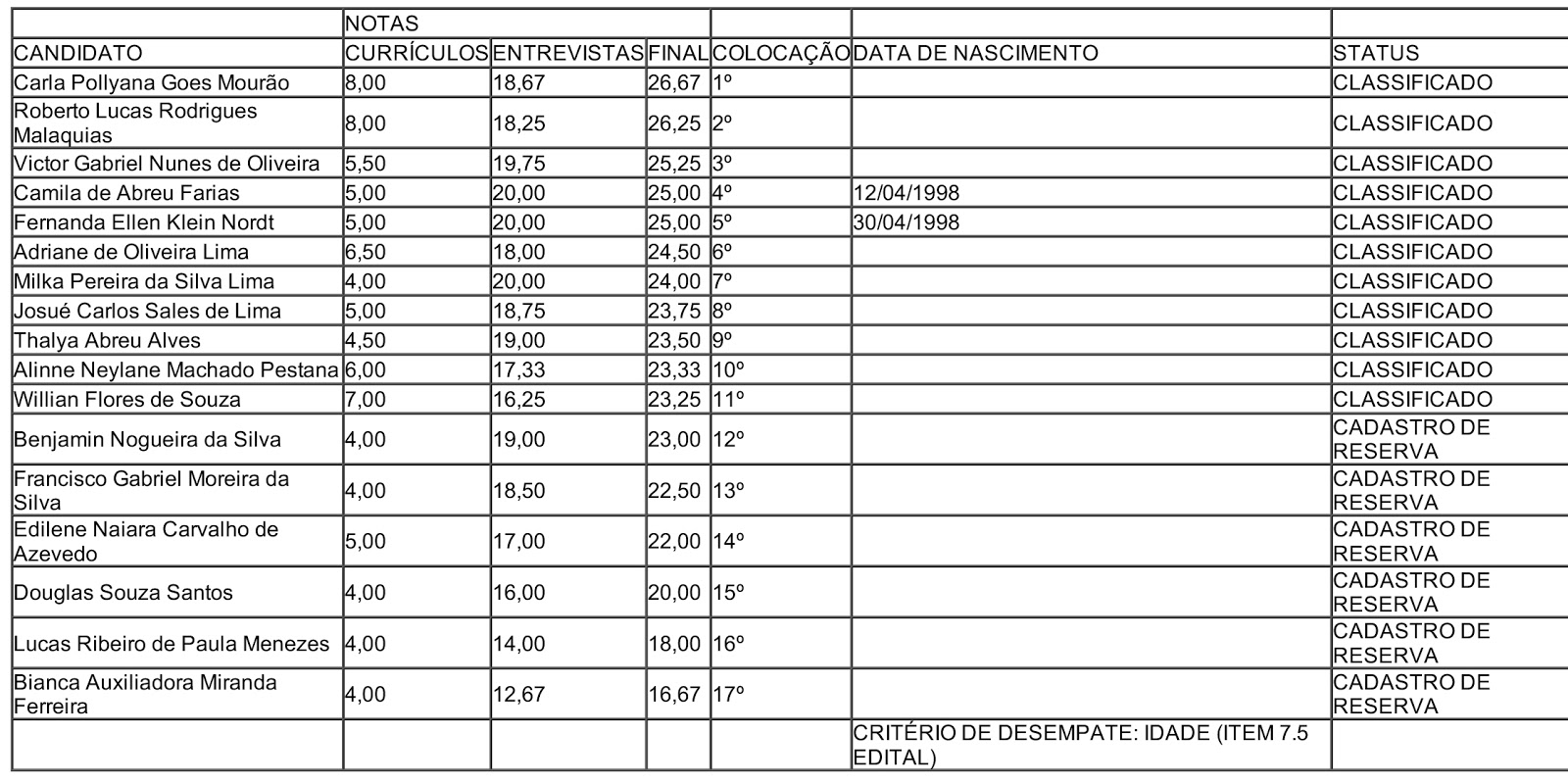 A Comissão de Seleção de Estagiários, designada pela Portaria nº 72/2019/SEC-NCH/UNIR, no uso de suas atribuições legais, resolve: HOMOLOGAR o Resultado Final do Processo de contratação de estagiários do Núcleo de Ciências Humanas.