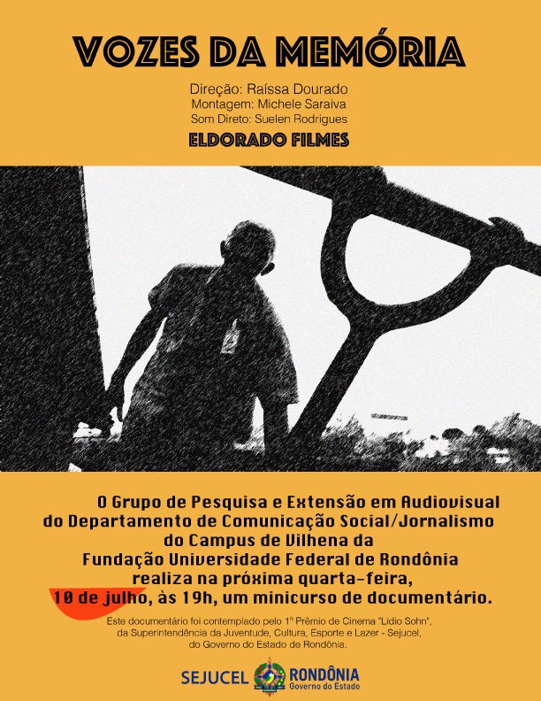 O Grupo de Pesquisa e Extensão em Audiovisual do Departamento de Comunicação Social/Jornalismo do Campus de Vilhena da Fundação Universidade Federal de Rondônia (UNIR) realiza na próxima quarta-feira, 10 de julho, às 19h, um minicurso de documentário.