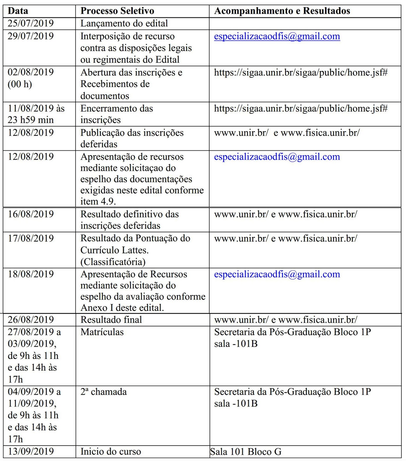Os interessados podem realizar a inscrição online, no endereço eletrônico https://sigaa.unir.br/sigaa/public/processo_seletivo/lista.jsf?nivel=L&aba=p-lato, de 2 a 11 de agosto de 2019.
