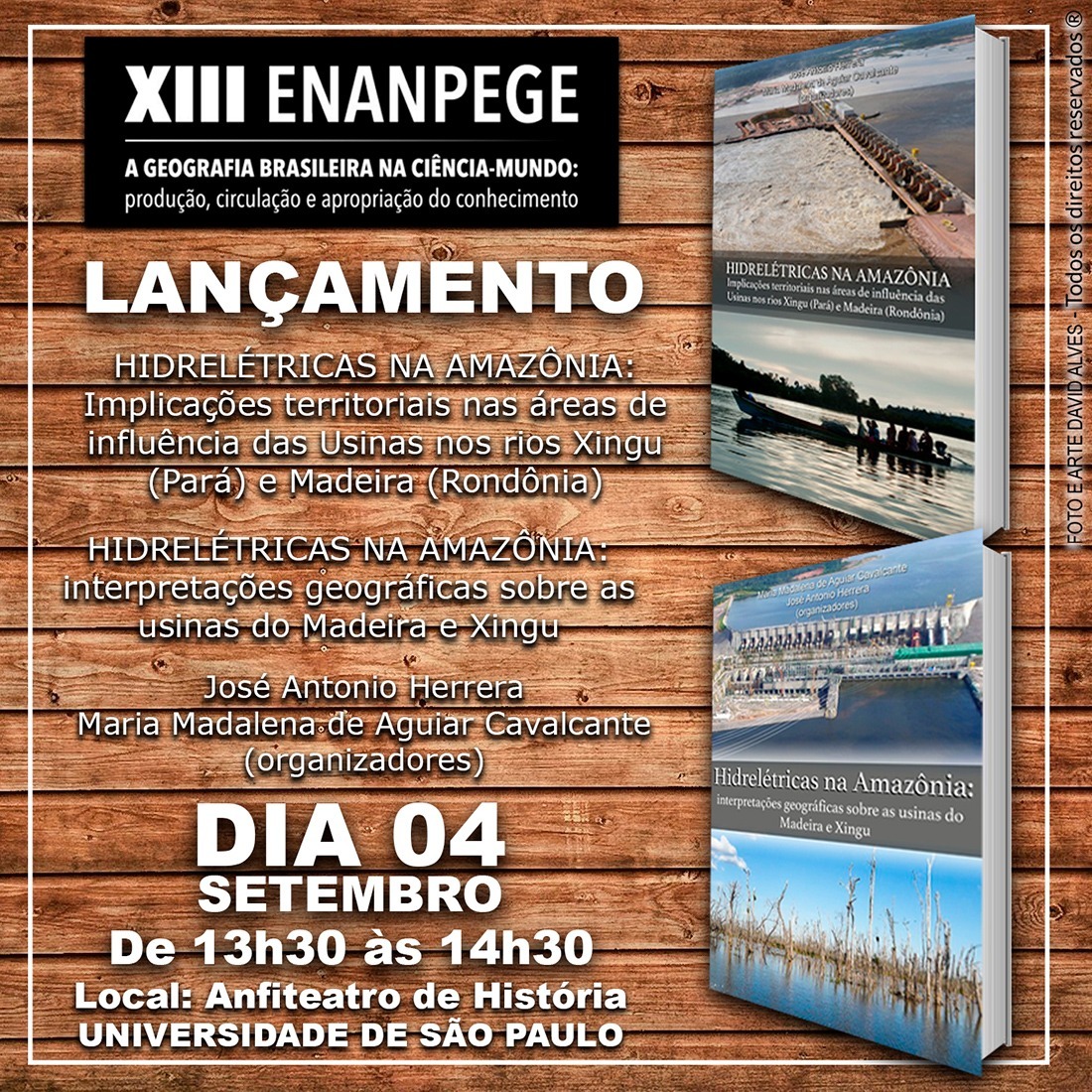 O lançamento dos livros será no XXIII Encontro da Associação Nacional de Pós-Graduação em Geografia (ENANPEGE), um dos eventos mais importantes eventos na área de geografia, que está ocorrendo desde o dia 02 de setembro e prosseguirá até 06 de setembro, na cidade de São Paulo.