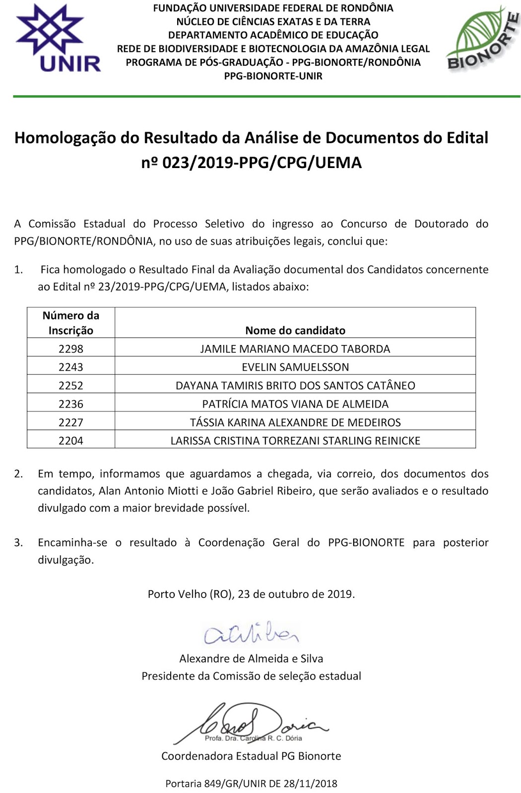 Edital N° 023/2019-PPG/CPG/UEMA - Homologação do Resultado da Análise de Documentos