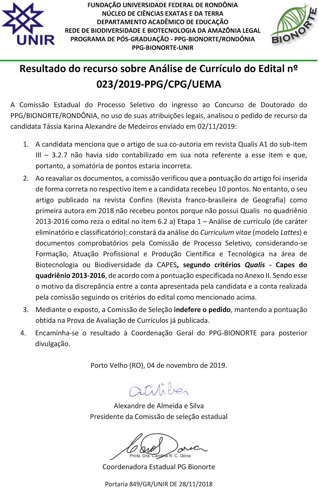 Edital N° 023/2019-PPG/CPG/UEMA - Publicado o resultado de Recurso interposto sobre Análise de Currículo