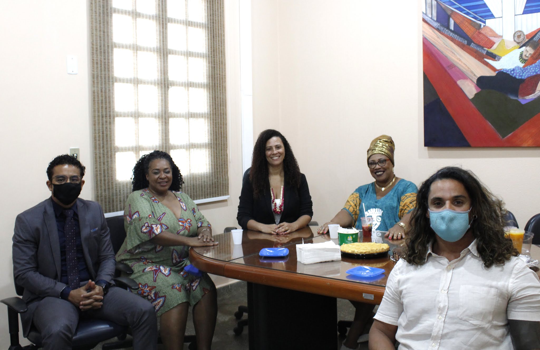 A nova reitora também recebeu as visitas de diversos professores e coordenadores de grupos de pesquisa da própria Universidade, acolhendo demandas e indicações de ações a serem desenvolvidas. “Têm sido contatos fundamentais para projetar o que vai ser efetivado nesta administração, especialmente naquilo que é uma necessidade: ações mais efetivas da Universidade junto à sociedade”, explicou a Reitora. Um destes encontros foi com a professora Rosângela Hilário, líder do Grupo de Pesquisa Audre Lorde, acompanhada por outros membros e parceiros do grupo, como a ativista Rosa Negra, do Movimento Negro Unificado. “Fomos levar à nova Reitora nossos votos de esperança no seu objetivo de acolher a diversidade ao longo da sua gestão”, disse a professora Rosângela.