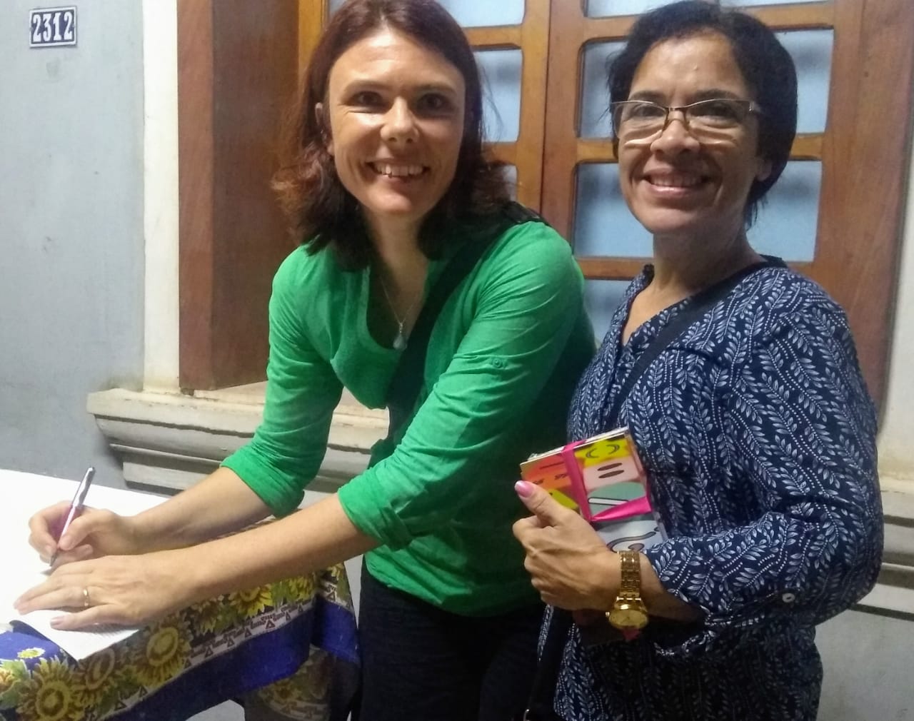 Lucas Khalil, chefe de Departamento, apresentou a autora aos peresentes e falou a respeito de suas impressões sobre a obra, afirmando que “trata-se de um livro didático (incomum) sobre um assunto pouco explorado no ensino da língua portuguesa. A publicação foi concebida na prática docente da autora, por isso está talhado para subsidiar o universo da sala de aula e apropriação da língua”.