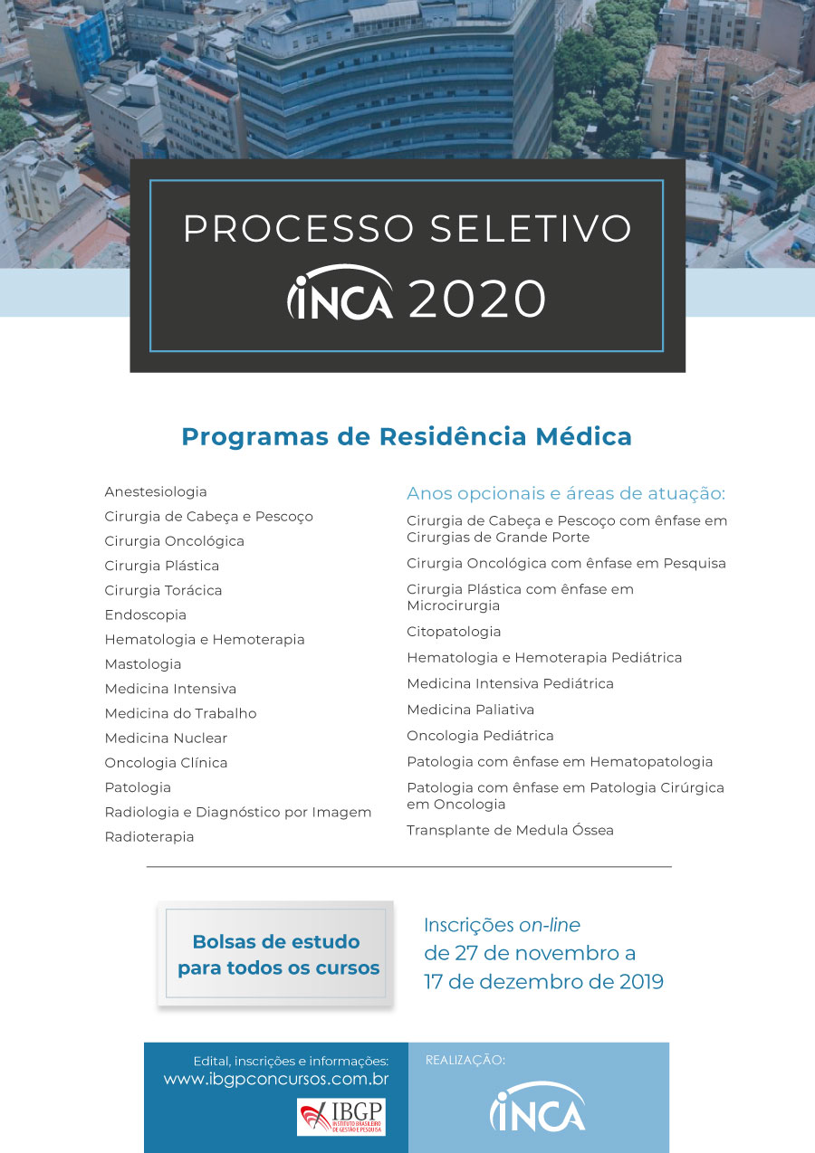 O Instituto Brasileiro de Gestão e Pesquisa (IBGP), é o órgão responsável pelo processo seletivo das Residências e Fellows do Instituto Nacional do Câncer (INCA), que auxilia o Ministério da Saúde (MS) na coordenação de vários programas nacionais para o controle do câncer, atualmente estando equipado com o mais moderno parque público de diagnóstico por imagem da América Latina.