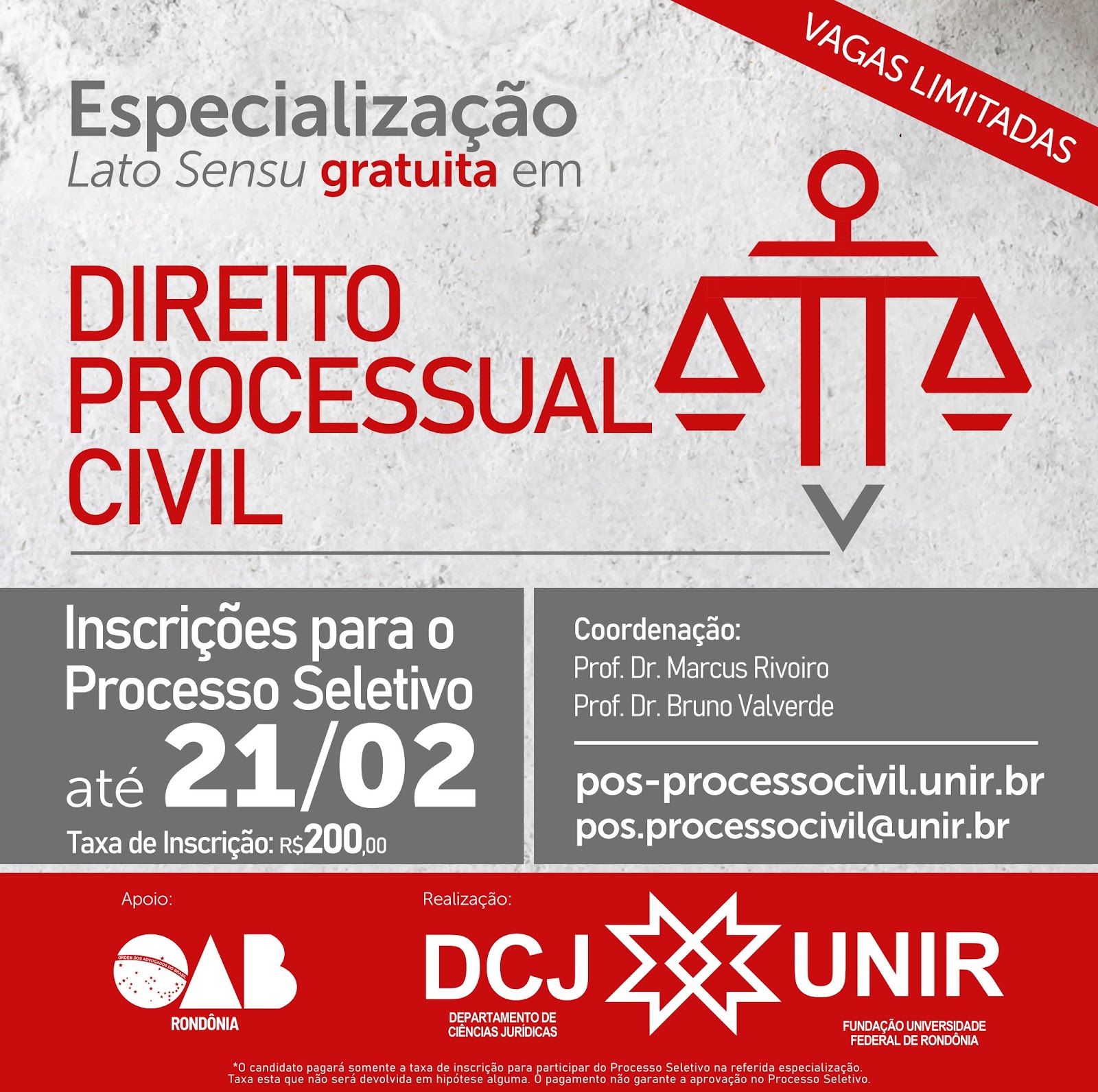 A especialização é coordenada pelos professores doutores Marcus Rivoiro e Bruno Chahaira, do Departamento de Ciências Jurídicas sa UNIR.