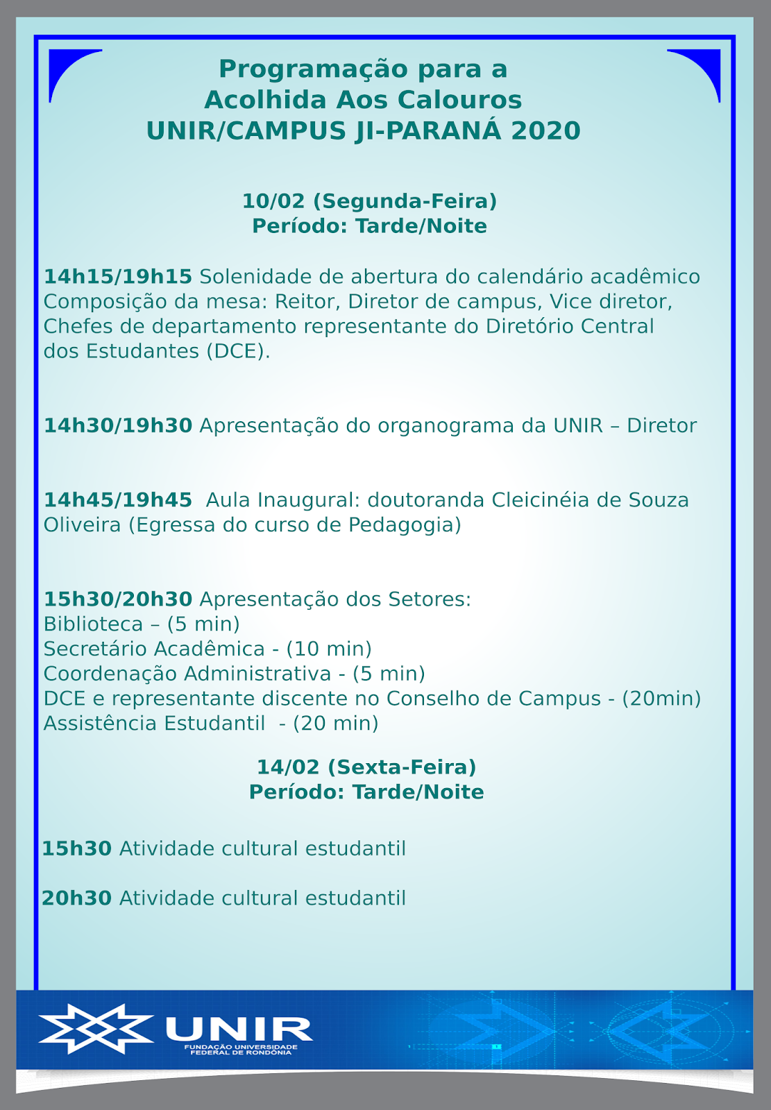 Campus de Ji-Paraná divulga programação de acolhida aos calouros de 2020.1