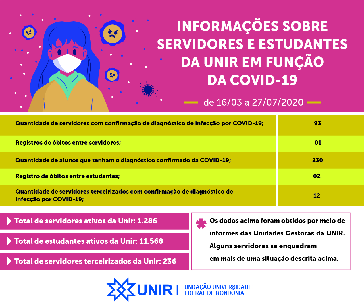 Ocorrências sobre a COVID-19 na UNIR | Período de 16/03 a 17/07/2020