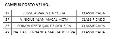 Os candidatos abaixo relacionados, classificados pelo Edital nº 02/2020/PROCEA ficam convocafos para assinar o Termo de Compromisso, no dia 04 de março, conforme estabelecido em cronograma. A assinatura deverá ocorrer na Diretoria de Assuntos Estudantis/PROCEA, localizada no Campus José Ribeiro Filho, na BR 364, Km 9,5, CEP, na presença de qualquer membro da Comissão de Seleção da bolsa.