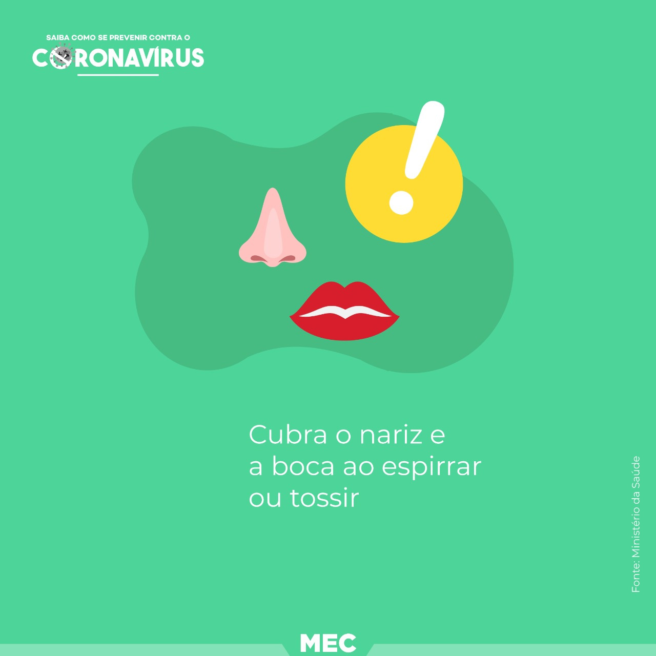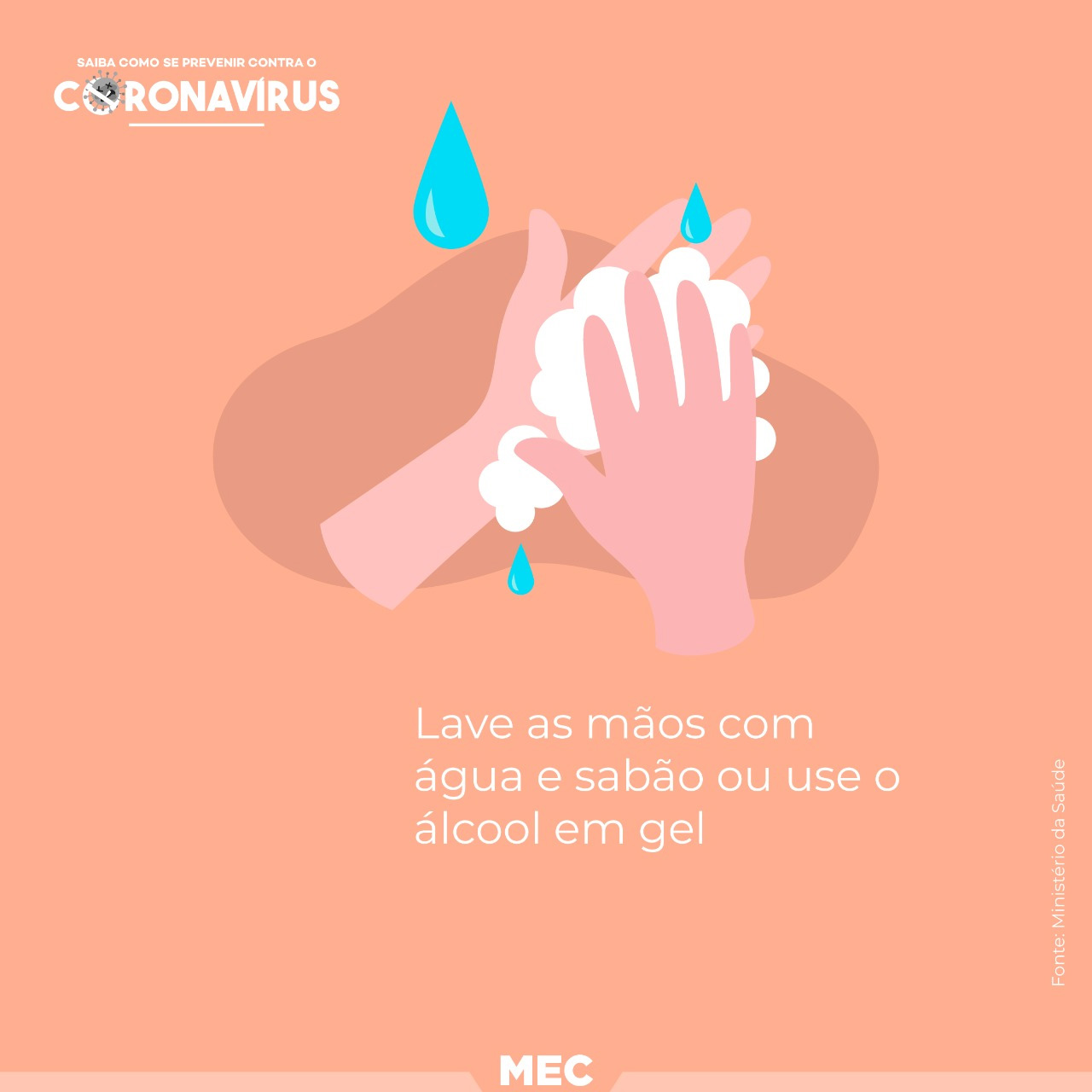 Ademais, como parte da campanha de prevenção ao novo coronavírus (Covid-19), o Ministério da Educação em parceria com o Ministério da Saúde produziu uma campanha para as mídias sociais sobre tema. Confira no vídeo abaixo algumas informações que tratam sobre o assunto.