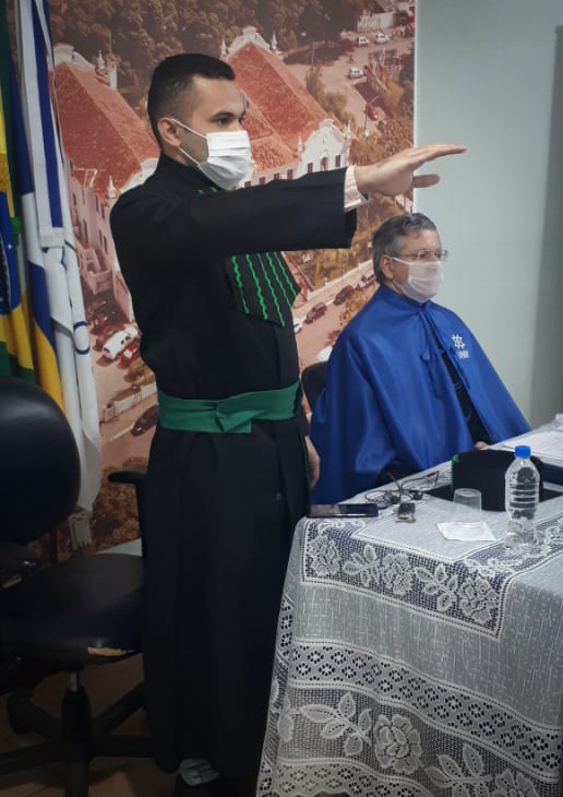 A Solenidade ocorreu, em conformidade com os dispositivos legais estabelecidos em seu regimento geral e de acordo com sua resolução n° 192 de 23 de abril de 2020, que autoriza a colação de grau antecipada da décima terceira turma do curso de medicina da UNIR, na modalidade à distância alternativamente às sessões solenes e presenciais, enquanto durar a situação de emergência em saúde pública decorrente da pandemia do novo coronavírus e COVID 19, na forma especificada na portaria n° 383 do Ministério da Educação, de 09 de abril de 2020.
