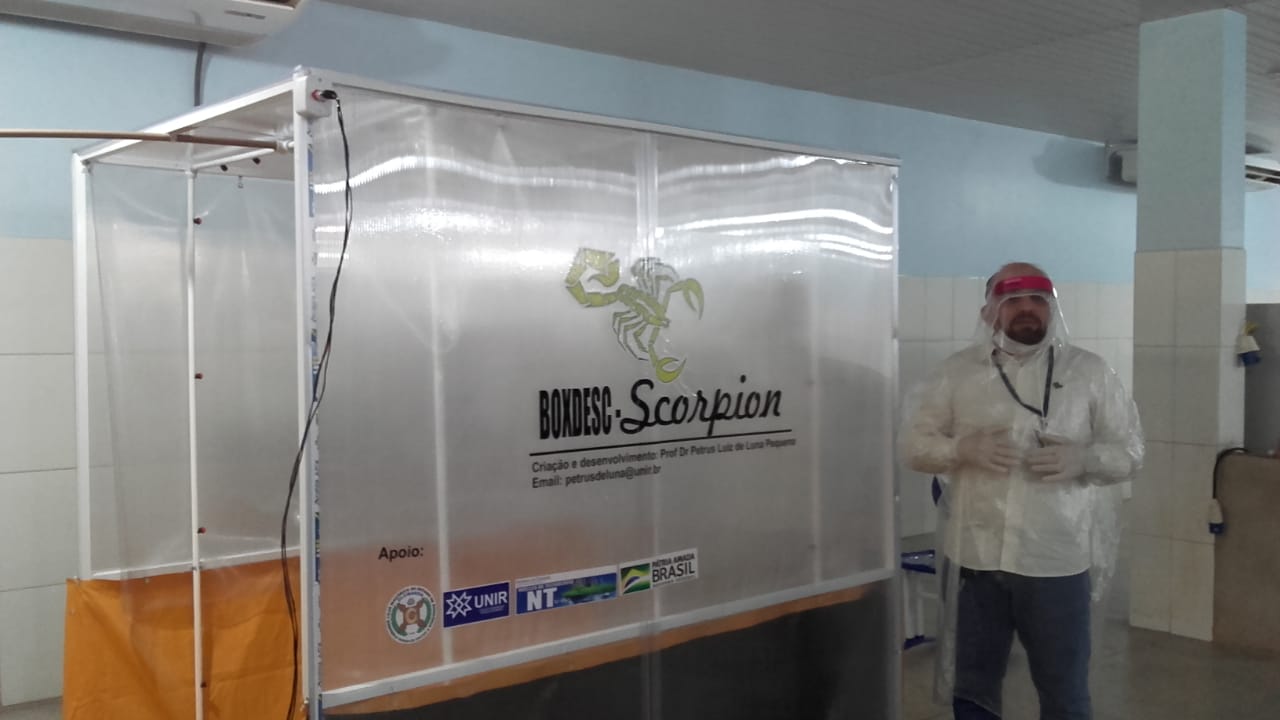 O diretor do Núcleo de Tecnologia (NT) da Fundação Universidade Federal de Rondônia (UNIR), professor doutor Petrus Luiz de Luna Pequeno, realiza a criação e o desenvolvimento de protótipo de câmara de baixo custo para desinfecção e descontaminação em ambientes de Unidades de Terapia Intensiva (UTIs), com apoio da Grande Loja Maçônica do Estado de Rondônia (Glomaron). O projeto tem como objetivo a diminuição de contaminação de profissionais da área da saúde A principal aplicação seria na descontaminação de vestimentas dos profissionais que atuam em ambiente hospitalar antes da desparamentação.
