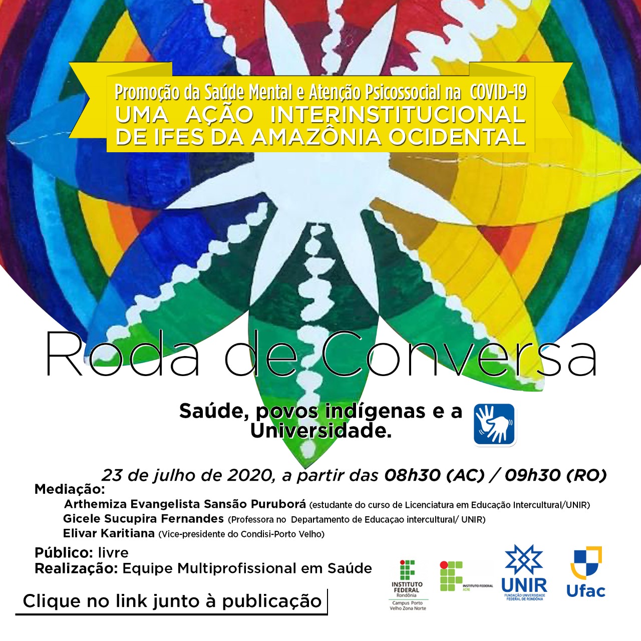 A Pró-Reitoria de Cultura, Extensão e Assuntos Estudantis (PROCEA) da Fundação Universidade Federal de Rondônia (UNIR) convida a comunidade universitária a participar da Roda de Conversa on-line com o tema “Saúde, Povos Indígenas e a Universidade". O evento será realizado nesta quinta-feira (23), às 9h30, no horário de Rondônia.