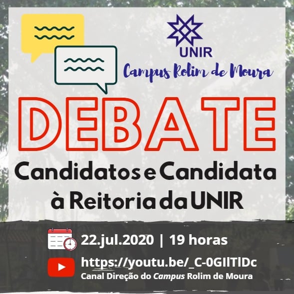 A Diretoria do campus de Rolim de Moura da Fundação Universidade Federal de Rondônia (UNIR), promove Live nesta quarta-feira (22), às 19h, para apresentação de propostas dos candidatos à Reitoria. A rodada de entrevista terá conversa sobre temas que interessam à comunidade acadêmica.