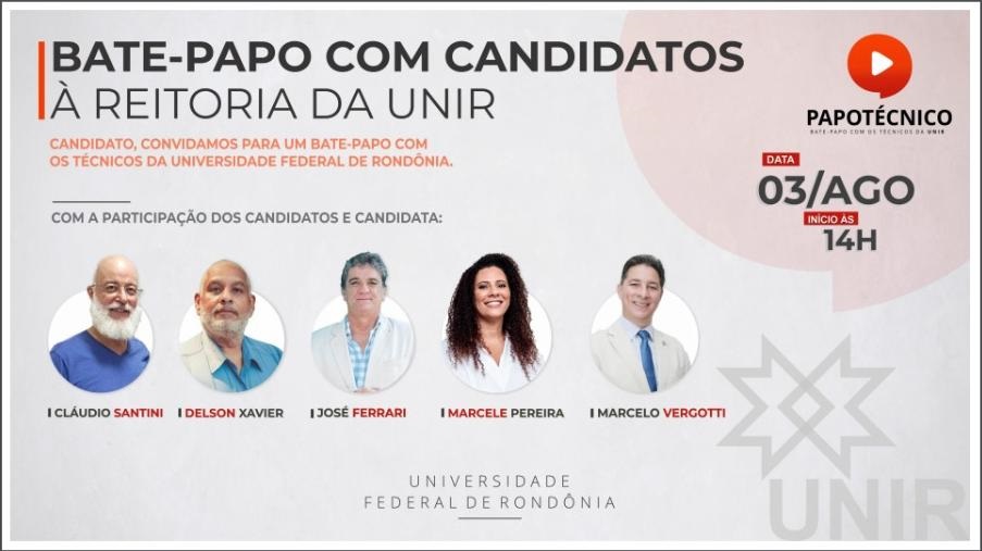 Objetivando discutir assuntos de interesse da comunidade acadêmica, em especial os de interesse da categoria dos Técnicos-Administrativos da Fundação Universidade Federal de Rondônia (UNIR), será realizado um momento de diálogo sobre os anseios da categoria com os candidatos à reitoria da Universidade.