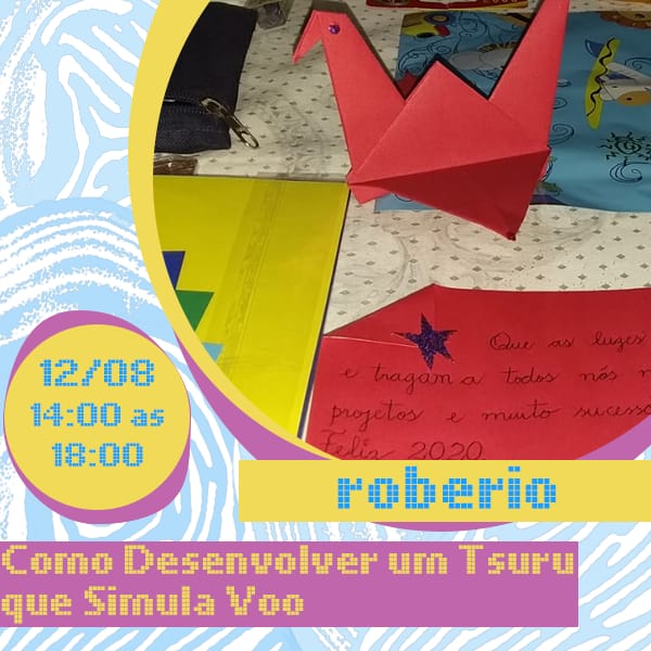 Nesta quarta-feira (12), seguem as atrações com a programação no eixo Práticas e Todos os Saberes com a oficina "Como desenvolver um tsuru que simula voo" de Robério Monteiro, que apresentará aos inscritos a lenda dos 100 tsurus e em seguida ensinará os passos para construir o origami da figura em papel colorido. A oficina estará disponível das 14 às 18h.