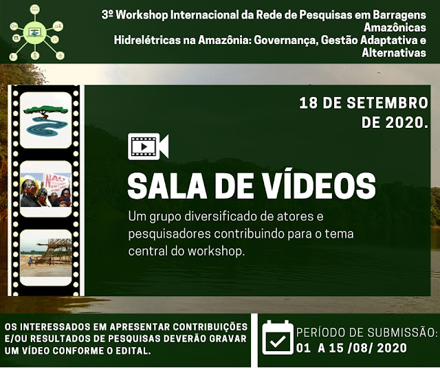 O prazo para submissões encerrará no dia 22 de agosto de 2020. Os interessados deverão consultar o edital que está no site da ADN, clicando no ícone "Video Room" da página, acesse: <http://amazondamsnetwork.org/workshop-online2020/>.