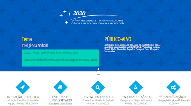 As inscrições para o Prêmio Mercosul de Ciência e Tecnologia, edição 2020, estão abertas até 11 de setembro.