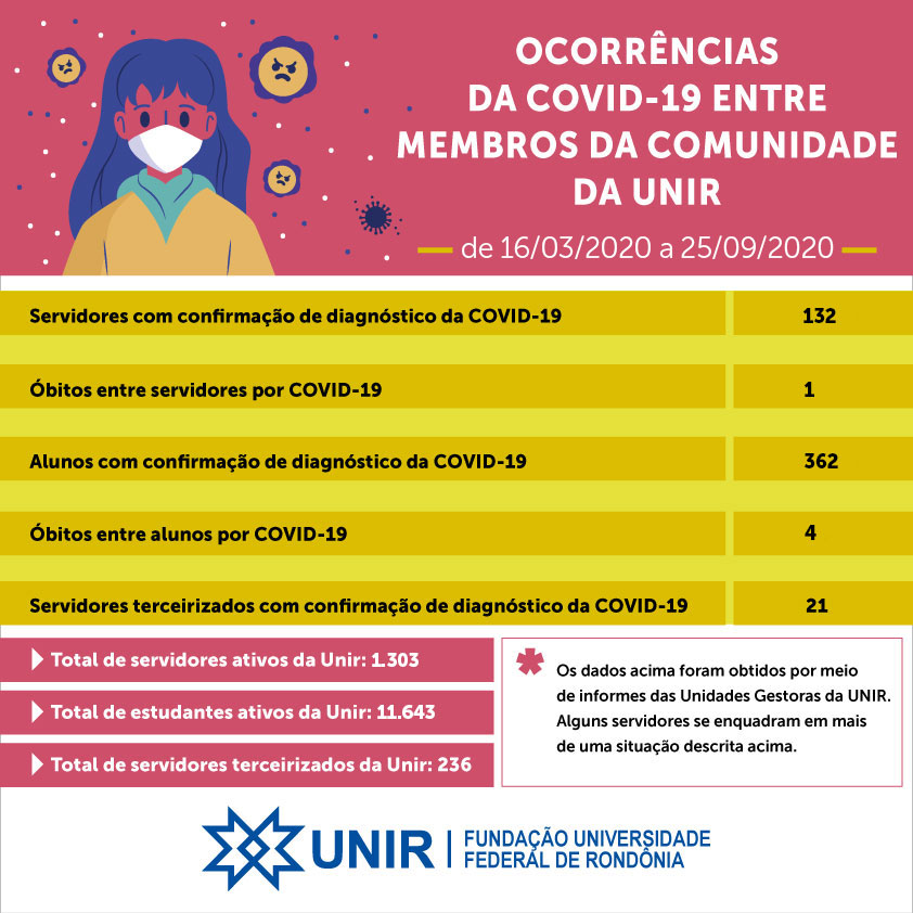 Ocorrências sobre a COVID-19 na UNIR | Período de 16/03 a 25/09/2020